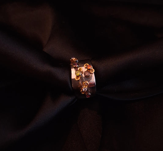 Anel ouro branco e amarelo c/diamantes- tipo aliança