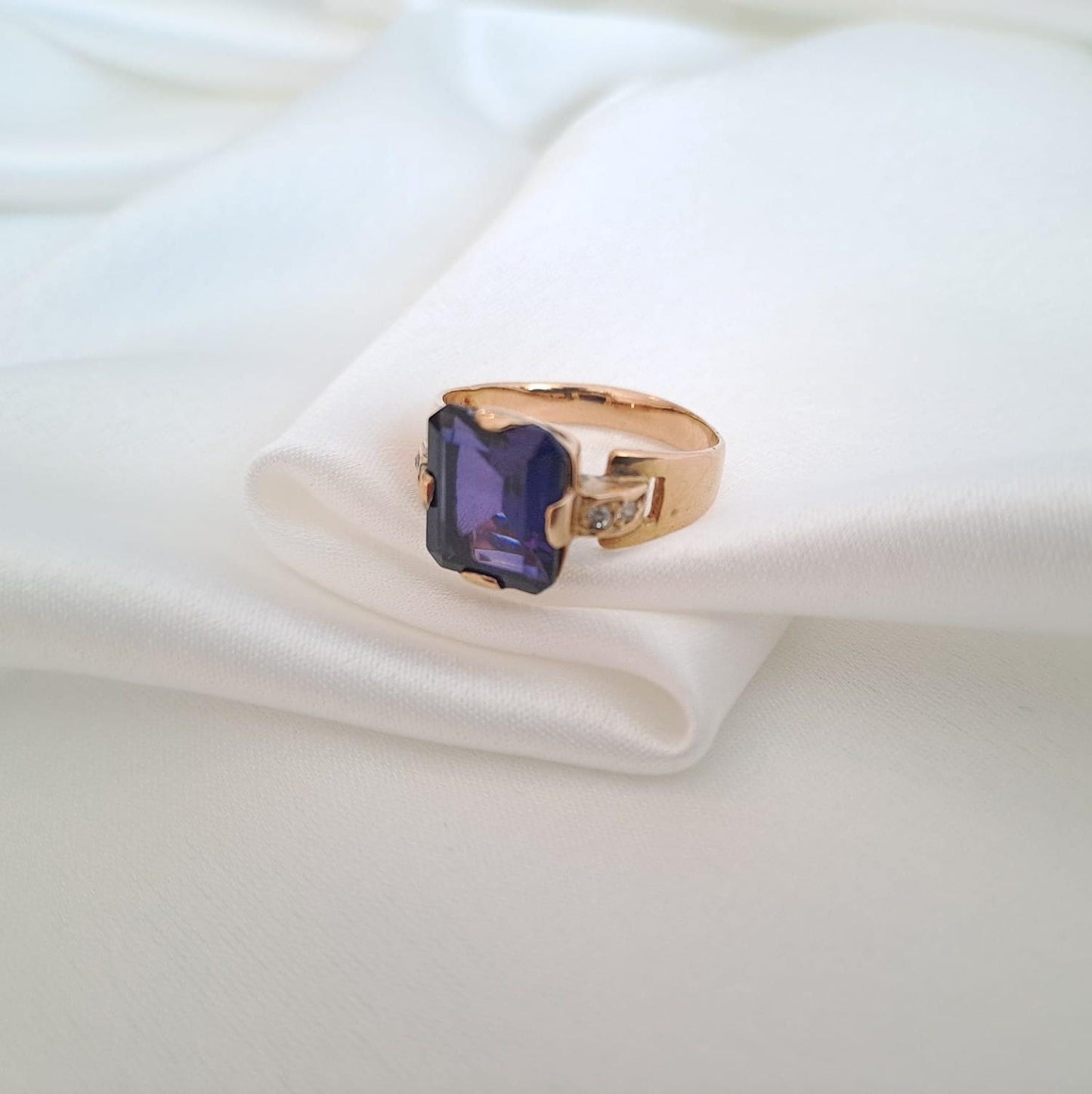 Anel com pedra azul e brancas